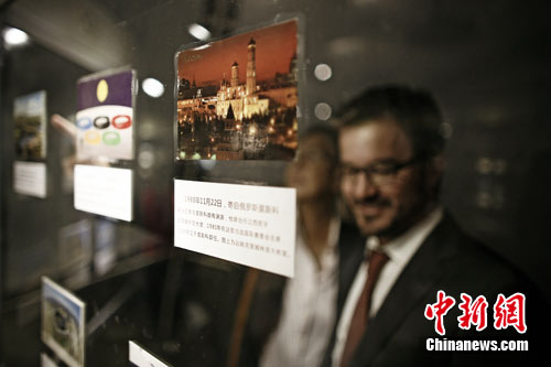 萨翁家族成员在观看萨马兰奇明信片特展。佟郁 摄