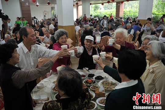 重庆百寿宴庆重阳 老人饭前集体做“手指操”
