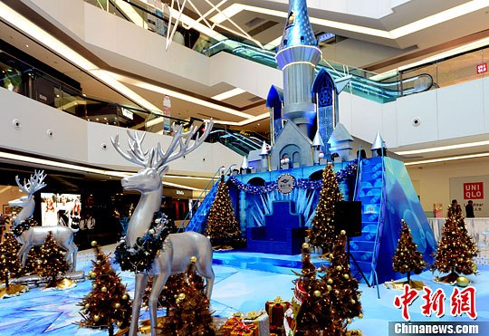 12月10日,圣诞节临近。福州市区多家大型商场装点、营造出浓郁的圣诞气氛吸引顾客眼球,抢商机。