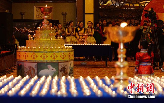 12月15日晚,在新疆库尔勒市,蒙古族群众点燃“祖鲁”。当晚,新疆巴音郭楞蒙古自治州(简称巴州)欢度“祖鲁节”活动在库尔勒市举行。2014年度的“祖鲁节”是12月16日(农历10月25日)。来自各县市的300余名蒙古族群众代表参加了此次“祖鲁节”活动。