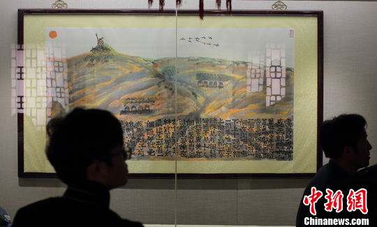 12月26日,观众参观以黄土地为主题的画作。中新社发 泱波 摄