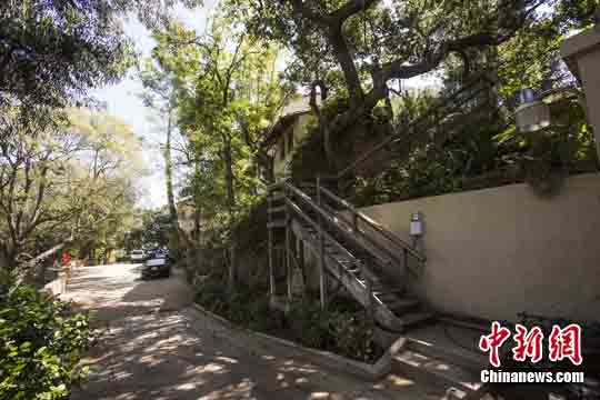 当地时间4月1日,美国洛杉矶,石油大亨保罗盖蒂(J. Paul Getty)孙子安德鲁盖蒂(Andrew Getty)在好莱坞山的豪华住宅门前。3月31日下午,石油大亨保罗盖蒂(J. Paul Getty)47岁孙子安德鲁盖蒂(Andrew Getty)被发现死于其在好莱坞山豪华住宅中,目前他的家庭已经确认消息属实,警方正在调查他的死因。