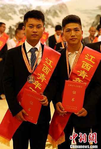 5月4日五四青年节,共青团江西省委、江西省青年联合会决定授予江西两夺刀少年柳艳兵、易政勇等20位优秀青年“江西青年五四奖章”荣誉称号。中新社发 姜涛 摄