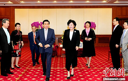 6月29日,中国海外交流协会常务副会长裘援平在北京会见了新加坡华裔精英人士访华团。中新社发 张勤 摄