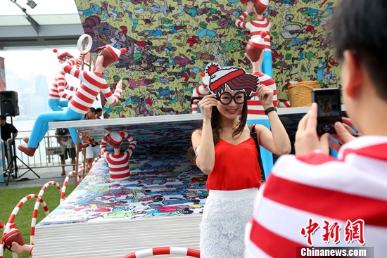 7月9日,香港海港城化身巧妙国度,举办快乐寻找-《Where’s Wally?》艺术展,共有48件威利模型,形态各异。另一英国经典汽车也打造艺术专车,配合连串活动,一同投入欢乐之旅。中新社发 洪少葵 摄