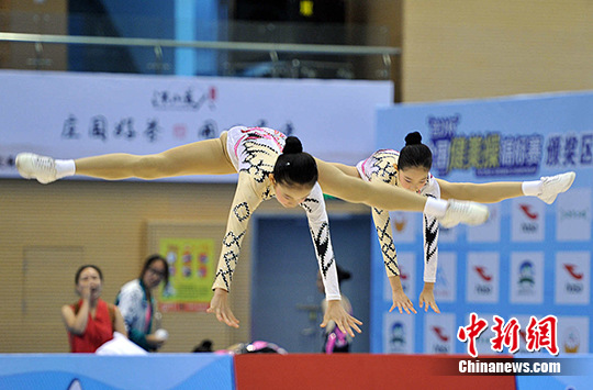 全国健美操锦标赛少年组运动员在比赛中。 张斌 摄