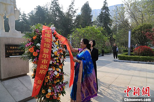 4月5日,印度索拉普尔友好代表团来到华北军区烈士陵园祭奠抗日战争时期印度援华医生柯棣华。印度索拉普尔市市长苏茜娜表示,柯棣华是中印两国友谊的象征,印度民众为柯棣华支援中国而感到自豪。