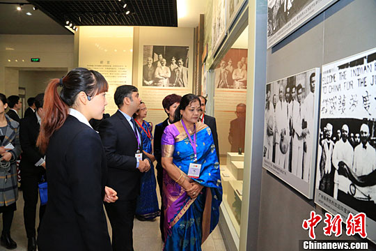 访问团一行人员参观印度援华医疗队纪念馆。张军 摄