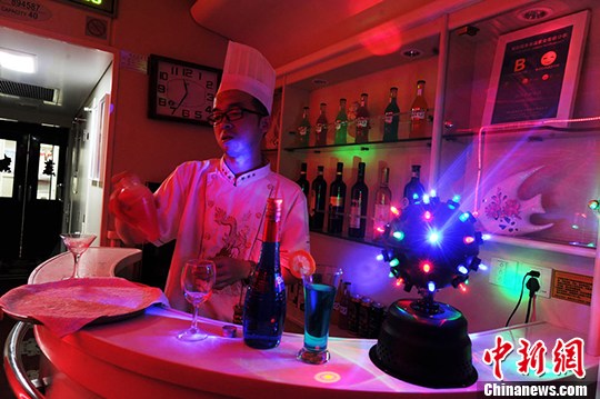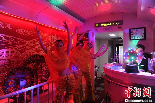 兰州至上海的“列车酒吧” 品红酒赏舞蹈