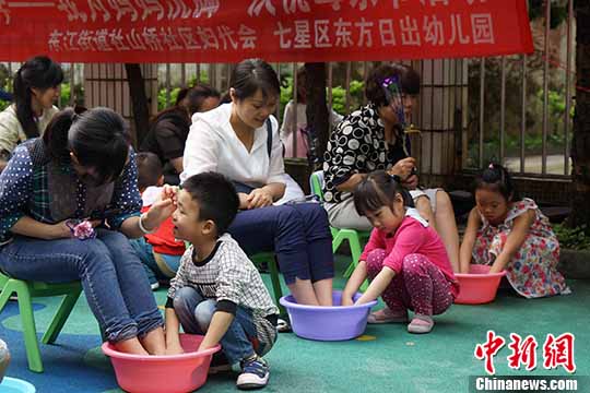 广西桂林幼儿园组织孩子为妈妈洗脚