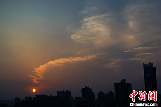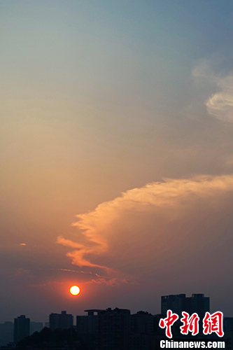 5月6日傍晚,贵阳市上空出现火红晚霞,美如画卷。