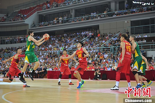 5月6日,2016中澳国际男篮对抗赛南宁站在广西体育中心篮球馆火热开战。经过激战,中国队57:49战胜对手澳大利亚队取得比赛的胜利。