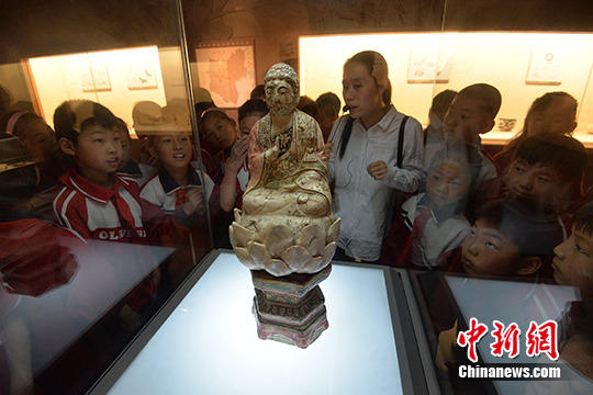 5月17日,河北邯郸彭城小学的孩子们来到磁州窑历史博物馆,参观丰富多彩的藏品,感受非遗的历史文化魅力。 中新社记者 郝群英 摄