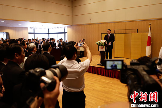 6月17日,日本新任驻华大使横井裕在北京举行到任招待会。图为横井裕大使致辞。中新社记者 李慧思 摄