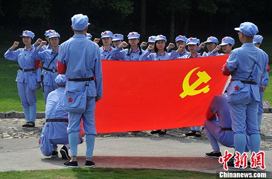 7月26日,一批批来自全国各地的中共党员们,穿上红军服装、戴上红军帽、背上红军包,来到革命圣地福建闽西上杭县古田镇,重温党的光辉历史,接受革命传统教育。1929年12月28日至29日,红四军在这里召开第九次党的代表大会,史称“古田会议”,这是中国共产党历史上的一次重要会议。2014年10月30日,全军政治工作会议在此召开,被称为“新古田会议”,再次掀起了这里的红色之旅热潮。