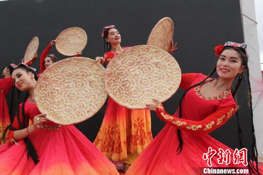 新疆库车“大馕舞” 美女与美食的组合