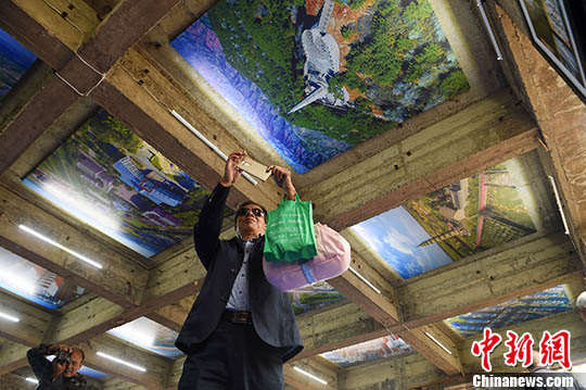 航拍摄影作品被放置在天花板上供游客欣赏。 中新社记者 武俊杰 摄