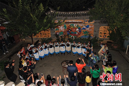 调研结束后孩子们来到一户纳西族人家参加篝火晚会。 中新社记者 吕少威 摄