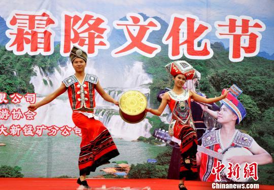 10月22日,中越边境广西大新县举办“边关风情旅游”霜降文化节,当地独具特色的壮族民俗和边关风情文化吸引大批游客。大新县与越南高平省接壤,是中国通往越南及东盟各国最便捷的陆路大通道之一。壮族霜降节起源于大新县下雷镇,是纪念下雷土司许文英、岑玉音夫妇抗倭立功的纪念日,至今已340周年,已列入广西壮族自治区非物质文化遗产名录。