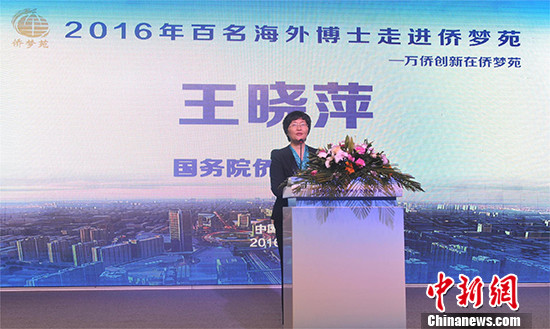 在开幕式暨湖北“侨梦苑”推介会上,国务院侨务办公室副主任王晓萍致辞。 中新社记者 马芙蓉 摄