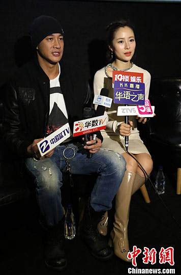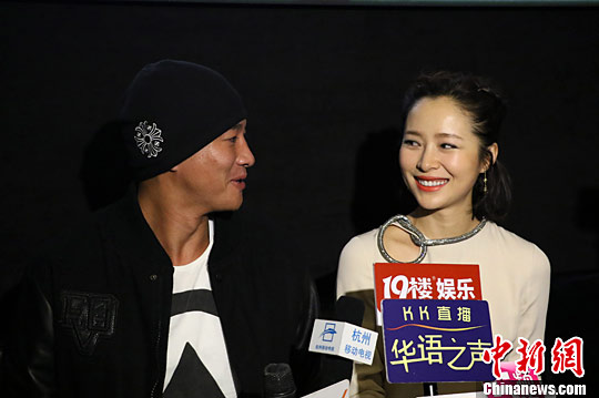 演员何润东和江一燕在杭州媒体见面会上笑答记者提问。中新社记者 王刚 摄
