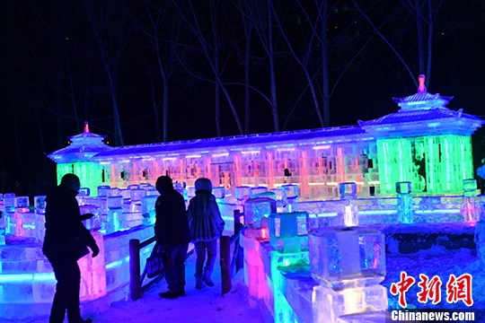 图为游客在园内冰景中游玩。 中新社记者 王舒 摄