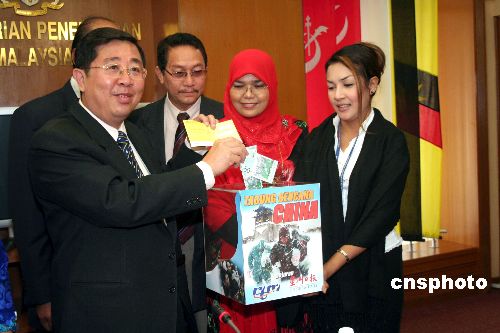 二月六日上午,马来西亚政府由新闻部召开新闻发布会,主题皆为协助中国政府与人民抗击五十年来特大雪灾。新闻部副部长谢宽泰号召国民积极捐款,协助中国政府与人民度过难关,并透露马来西亚政府已宣布向中国捐款一百万美元。中新社发 苏祥新 摄