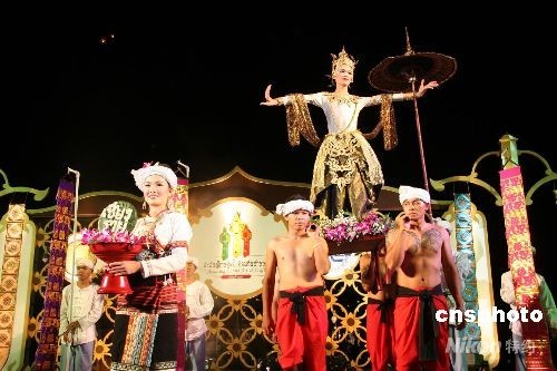 泰国清迈北部兰那文化节八月十四日晚在清迈皇家园林公园举行开幕仪式。泰国旅游和体育部长考素叻预计该文化节将为当地带来大约四亿泰铢的收入。在为期十天的文化节期间,主办单位将通过歌舞、手工艺及美食制作示范等形式,集中展示来自泰北清迈、清莱和夜空颂等泰国北部地区八个府的兰那文化特色。图为开幕式上歌舞表演。中新社发 顾时宏 摄