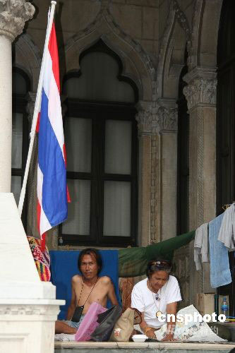 尽管泰国宪法法院九月九日已经判决总理沙玛因主持电视节目违背宪法无资格当总理,但占据总理府的民盟示威者依然没有离去。在总理府的过道上走廊里,随处可见半躺半睡的示威者,或在看直播演讲的电视,或上网,或随音乐唱歌跳舞,千姿百态。中新社发 顾时宏 摄