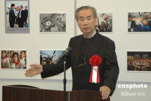 9月10日上午,四川大地震复兴支援会会长、国会众议员、日本原首相羽田孜等日本各界关心四川地震灾区的人士来到东京都新宿文化音乐大楼,出席人民日报海外版、日中新闻社、日本志愿者协会及四川省人民政府、四川省文联联合主办的中国四川大地震图片展。 中新社发 关妍 摄