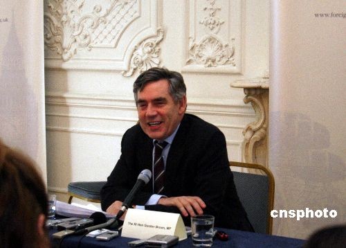 当地时间14日中午,英国首相布朗在伦敦外国记者协会回答提问说,世界现在正处于新的全球化时代的首个金融危机,需要对新的全球金融体系进行必要的改革。中新社发 李鹏 摄