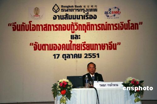 中国驻泰国大使馆张九桓大使十七日在由朱拉隆功大学和盘谷银行联合举办举行的“泰国中文教学与中国应对世界金融危机”研讨会上说,中方将一如既往地以积极真诚的态度,加强与泰国在中文教学方面的交流与合作。并准备重点做好以下几项工作,包括进一步加强孔子学院的建设,面向泰社会各界人士开展汉语教学,促进中泰文化交流;加强中国对外汉语教学的师资培养工作,努力满足泰国汉语学习对汉语教师的需求;充分利用信息技术,积极推广多媒体、网络教学,加强教材设计,开发和完善对外汉语教材体系;加强同泰国在推广汉语教学方面的合作,为泰国培养本国汉语教师提供各种帮助。中新社发 顾时宏 摄