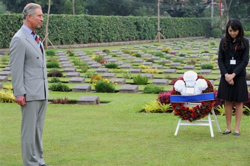 英国王储查尔斯访问印尼,并向二战中阵亡的反法西斯战士墓敬献花圈。
