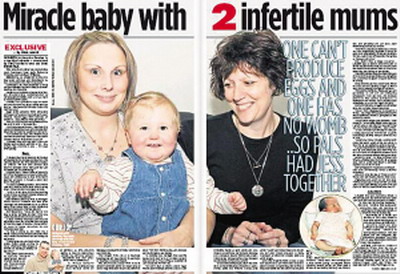 2007年6月,丽贝卡早产1个月生下了一名重2.44公斤的女儿杰西卡。专家称,由2名不孕女子联手“合生”一名健康婴儿,堪称史无前例。