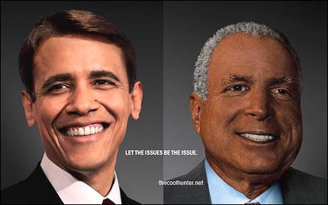 美国2008年总统大选即将到达高潮时刻,选民们即将投票选出他们心目中的新总统。日前,美国著名广告公司——精信广告公司制作了一款海报,将奥巴马和麦凯恩的肤色对调:奥巴马变成了白人,麦凯恩变成了黑人,希望以此呼吁选民忽略种族差异。