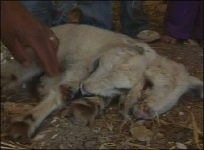 这只双头羊羔不能站立,也不能正常地吃奶。就因为这,母羊发现它太难带了,于是抛弃了这只小羊羔,对它不管不顾。