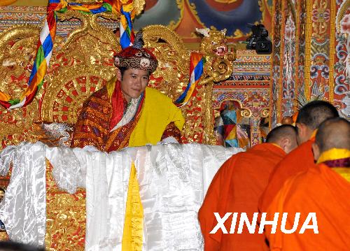 11月6日,不丹第五世国王吉格梅·凯萨尔·纳姆耶尔·旺楚克的加冕大礼在廷布举行。吉格梅·凯萨尔·纳姆耶尔·旺楚克国王现年28岁,曾在美国和英国学习,并获得牛津大学政治学硕士学位。在正式从父亲手中接过王冠之后,他成为了当今世界上最年轻的国王。新华社记者王晔摄