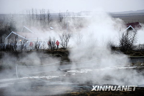 图:冰岛地热奇观 村镇被白雾笼罩
