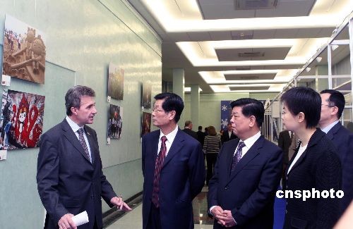 12月1日,《从莫斯科到北京——第29届奥运摄影展》特别展在俄罗斯国家杜马(议会下院)举行。中国驻俄大使刘古昌、中国文联常务副主席胡振民、俄国家杜马议员等出席。中新社发 田冰 摄