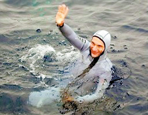 图:意大利潜水员水下憋气创世界纪录