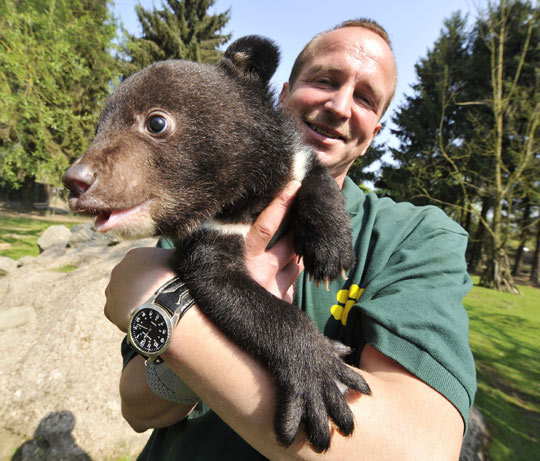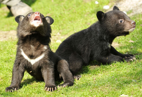 4月15日,两只可爱的亚洲黑熊在德国北部的一家动物园亮相,其中最小的那只只有3个月大。