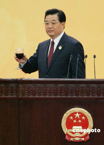 十一月四日晚,中非合作论坛北京峰会欢迎宴会在北京人民大会堂举行,中国国家主席胡锦涛致祝酒辞。中新社发 毛建军 摄