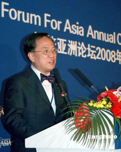 四月十二日,香港特区行政长官曾荫权在海南博鳌亚洲论坛二00八年年会午餐会上作主题为“香港特区的持续发展”的演讲。中新社发 关向东 摄
