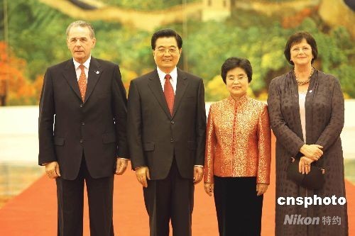 图:胡锦涛夫妇欢迎罗格出席北京奥运会