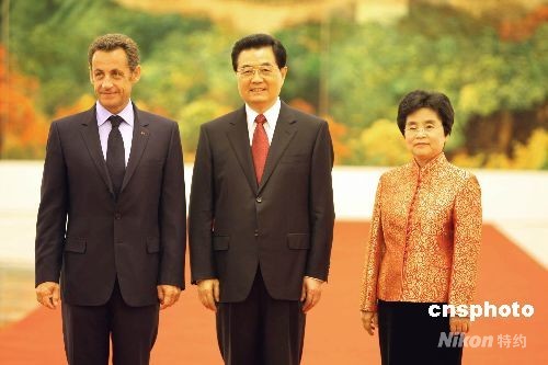 图:胡锦涛夫妇欢迎萨科齐出席奥运会