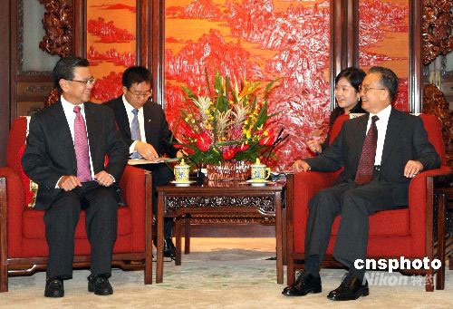 9月5日,中国国务院总理温家宝在北京中南海紫光阁会见新加坡副总理黄根成。中新社发 廖文静 摄