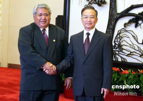 图:温家宝与萨摩亚总理图伊拉埃帕举行会谈