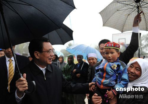 图:贺国强在宁夏固原慰问回族村民