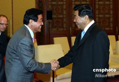 九月二十五日,全国政协主席贾庆林在北京人民大会堂会见出席第二届制造业论坛的外国嘉宾。中新社发 任海霞 摄