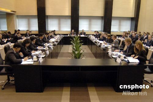 中欧(盟)第23次经贸混委会9月25日在北京举行,中国商务部部长陈德铭与欧盟委员会贸易委员彼得·曼德尔森进行高层对话,就中欧贸易长期发展中存在的一些课题及发展前景广泛磋商。中新社发 徐曦弋 摄